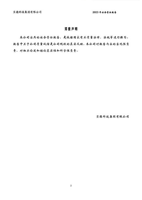 貝德科技集團2023質量誠信報告